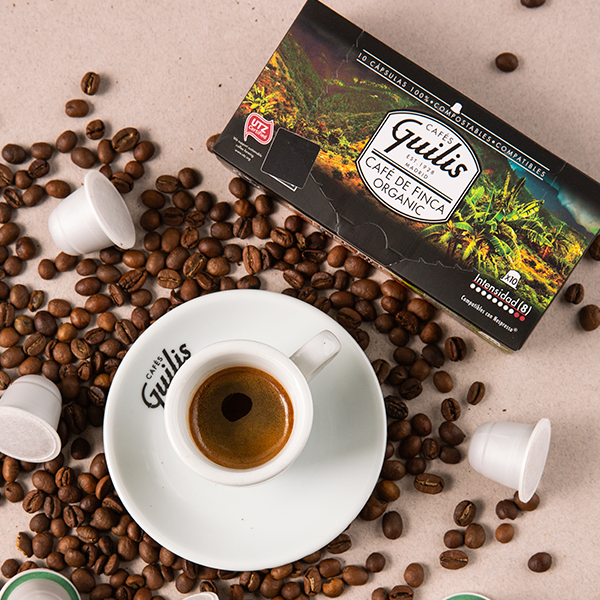 Cafés Guilis en su compromiso con el medio ambiente fabrica cápuslas compostables lo que significa que se degradan sin dejar ningún resíduo. El uso de cápsulas compostables ayuda a reducir el impacto medioambiental gracias a que se degradan junto con el resto de materia orgánica..