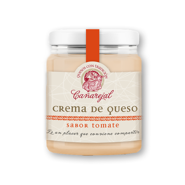 Queso fundido elaborado con los productos finales de Cañarejal: Curado y Cremoso y se le añade tomate deshidratado, dando el resultado una crema con un sabor elegante para cremas con vegetales