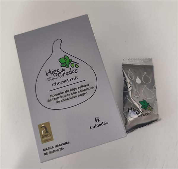 BOMBON DE HIGO RELLENO DE FRAMBUESA CON COBERTURA DE CHOCOLATE NEGRO