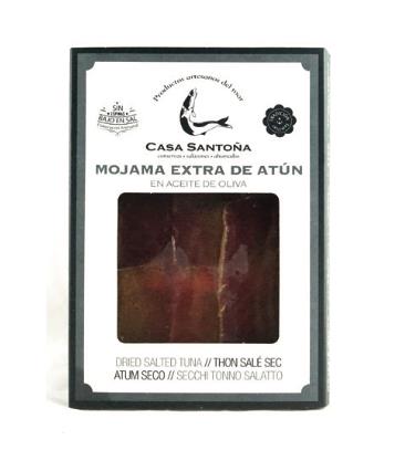 Nuestra exquisita mojama de atún fileteada y conservada en aceite de oliva para darle un toque jugoso.