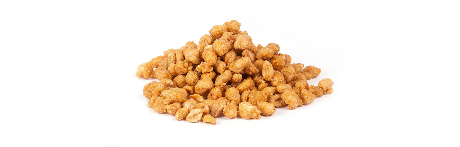 Cacahuetes garrapiñados con una fina capa de miel y azúcar.