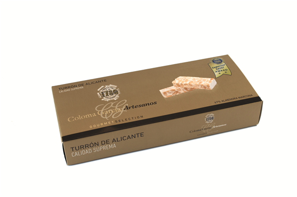 El turrón de Alicante de siempre, de la mayor calidad y los mayores porcentajes de almendra marcona (67%) y miel de azahar (18%)