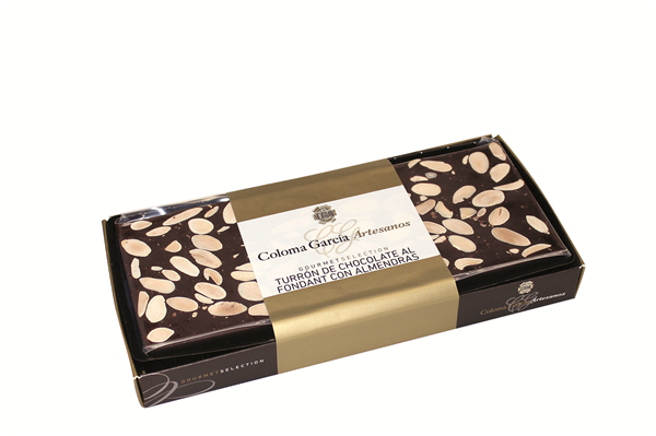 Almendras marconas y chocolate puro de alta calidad mezclados para elaborar un turrón exquisito.