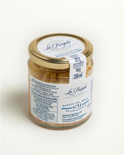 Es el más apreciado de los túnidos. Se elabora con bonitos de pequeño tamaño frescos, limpiados a mano y cortados a cuchillo, siguiendo un cuidado proceso artesanal. Están bañados en aceite de oliva.