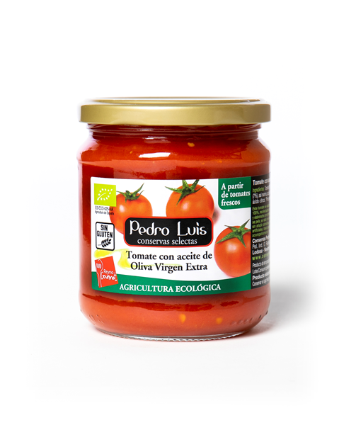 Este tomate se elabora partiendo de tomates frescos 100%, recolectados en su punto óptimo de maduración y elaborados con prontitud desde su recogida. El tomate se pela y se elabora a vacío, a baja temperatura, para posteriormente añadir el aceite de oliva virgen extra, sin añadir colorantes, espesantes, aromas ni esencias artificiales. Ideal para untar, para desayunos y como acompañamiento de platos o base de salsas.