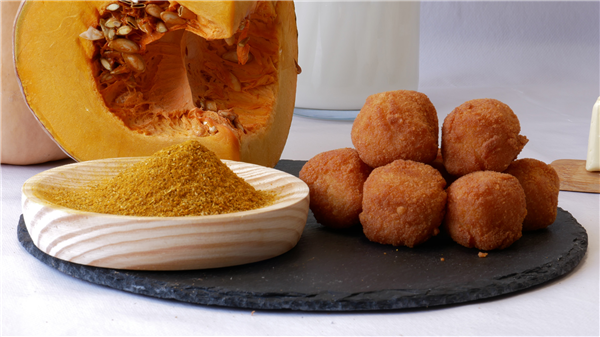 Croquetas caseras de calabaza con curry. Croquetas veganas elaboradas con leche que no es de origen animal.