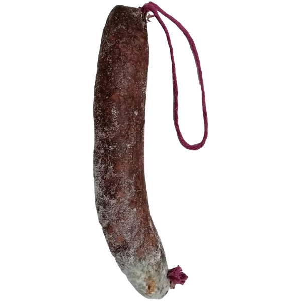 Textura muy suave y sabores equilibrados, completamente libre de gluten y lactosa.   Paleta de Ciervo 80% y papada de cerdo ibérico 20%,aliñado con pimentón picante de la vera D.O, ajo fresco y sal. Embutido en tripa natural. Peso Aprox. 200g