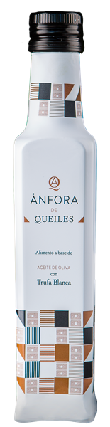 Aceite de Oliva Virgen Extra, 100% Arbequina macerado con trufa blanca. Las olivas ecológicas provenientes exclusivamente de Hacienda Queiles, y la trufa (Tartufo bianco pregati) provenientes exclusivamente de Azienda Fortunati, Italia.Ideal para aliñar platos de ensaladas, elaboraciones de pasta, arroz y quesos. Aderezo de carpaccio de carne o pescado.
