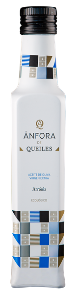 Ánfora de Queiles es un aceite de oliva Virgen extra a base de la oliva Arróniz 100%, ecológica certificada, es un aceite de color, amarillo verdoso, su aroma es a hierba recién cortada y frutas maduras en punto óptimo de maduración. En el gusto es intenso, en primer momento notas verdes pasando a fruta con el tiempo. Picor y amargor notables, sin molestar.