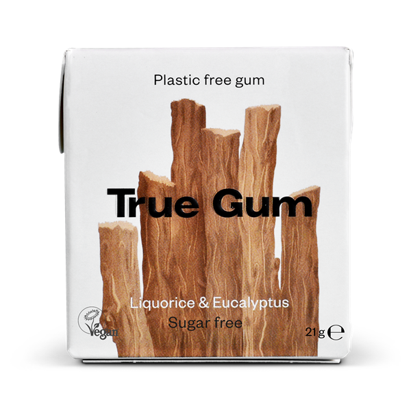 Chicle sin azúcar con sabor a regaliz y eucalipto. Contiene edulcorantes.