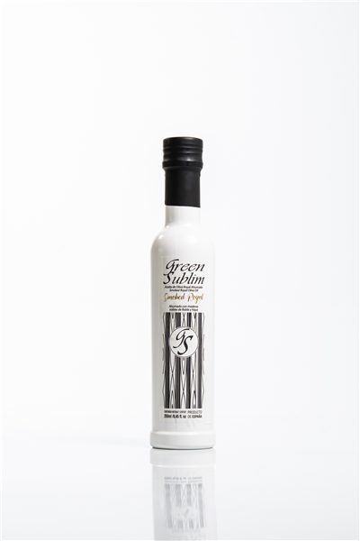 Nuestro aove temprano de variedad Royal ha sido ahumado artesanalmente con maderas ecológicas de roble y haya en el norte de España por un maestro ahumador. El sabor único de esta variedad autóctona de Jaén se une a los matices dulces y caramelizados del humo de las maderas nobles, haciendo la degustación de este aceite una experiencia única.