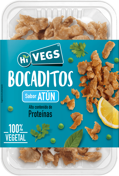 BOCADITOS SABOR ATÚN HECHOS A BASE DE PROTEÍNA DE GUISANTE