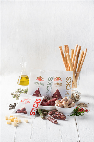 Deliciosos Snacks y Sticks de Fuet tradicional, chorizo y salami, natural y sabroso, perfecto para picotear entre comidas, como aperitivo o como fuente de energía después de hacer ejercicio.