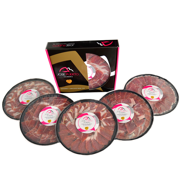 La calidad de nuestro Jamón de Cebo Ibérico está garantizada gracias al cuidado con el que es elaborado desde el nacimiento de nuestros cerdos en la granja de Las Laderas hasta el proceso de curación de 24 a 30 meses de duración en el que es sometido a un meticuloso control de calidad. Esta técnica se denomina MAP O EAP (Envasado con Atmósfera Protectora). Este proceso se realiza sobre todo para aumentar la vida útil del producto, aportar mayor protección y prevenir que el producto pierda su color. Pack de 5 Sobres de 100 Gramos Jamón de cerdo ibérico de cebo, Sal, Conservadores E-250 y E-252 y Antioxidante E-316. Azúcar Valor energético / Energía 1402 KJ/337 Kcal. Grasas: 22.5 g de las cuales saturadas:7.5 g. Hidratos de carbono:<0,5 g. de los cuales azúcares:<0.5g. Proteínas:33.2 g. Sal:1,3 g.