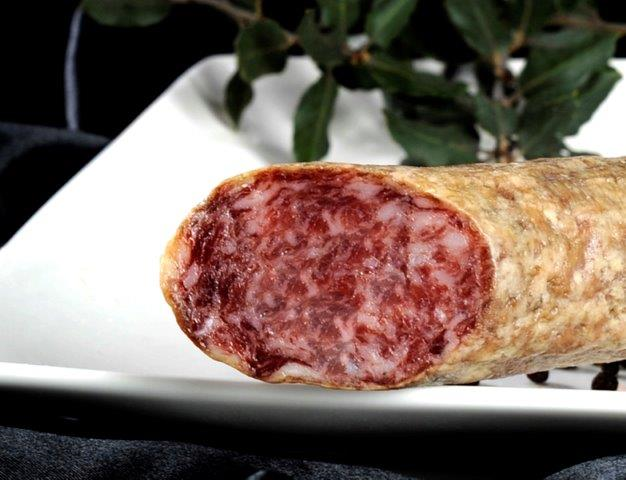 Elaborado a base de carne escogida de cerdo ibérico, sal, pimienta negra y especias.