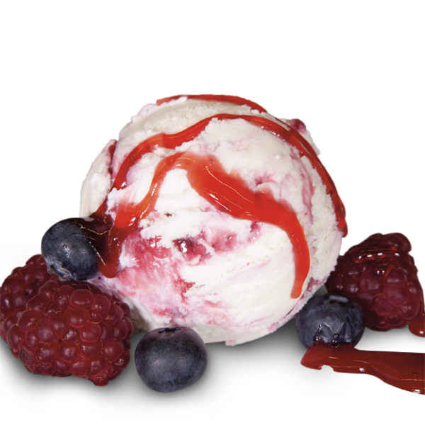 Yogur con frutas del bosque. Helado de yogur natural con salsa de frutas del bosque.