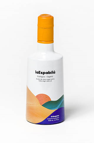 Aceite de Oliva Virgen Extra Ecológico. Elaborado sólo con las aceitunas verdes de los primeros días de cosecha. Variedad Arbequina. Calidad Premium en formato de 500 mL.