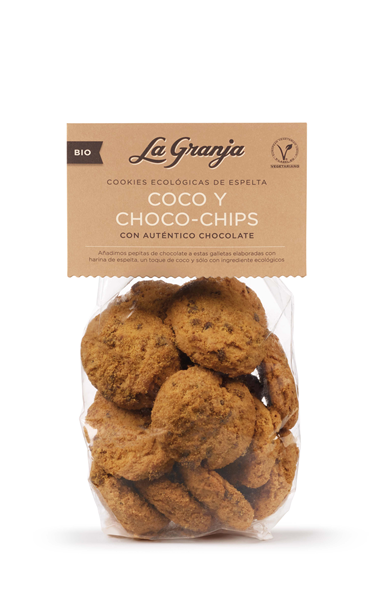 Cookies ecológicas de espelta, coco y choco chips con autentico chocolate