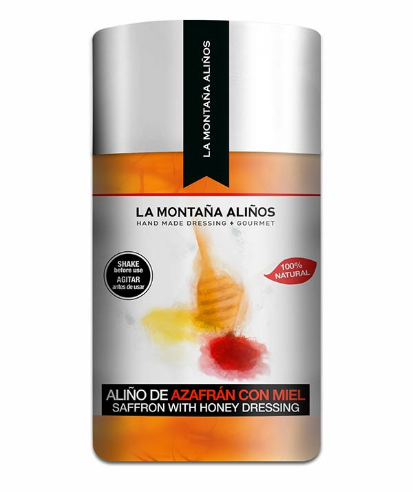 Nuestro aliño de azafrán con miel es una mezcla artesanal de vinagre y azafrán, sin conservantes ni colorantes añadidos.