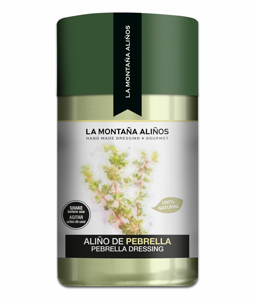El aliño de pebrella es una deliciosa mezcla artesanal de vinagre y eneldo fresco, sin conservantes ni colorantes añadidos.