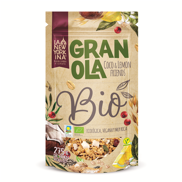 Coco & Lemon Friends es nuestra granola ecológica y vegana. Horneada con aceite de oliva virgen, coco y un toque de limón, esta granola se convierte en la fuente de energía esencial para comenzar tu día, coger fuerzas a media mañana o para un buen entreno.