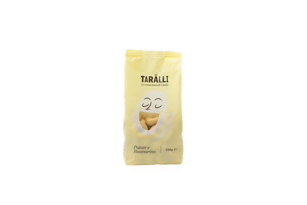 La herencia milenaria de Puglia sigue viva en cada uno de estos aromáticos taralli, elaborados con ingredientes sencillos y tradicionales, pero ricos en sabor: harina, sal, aceite de oliva y vino blanco. Se hornean durante el tiempo exacto para que queden dorados y crujientes.