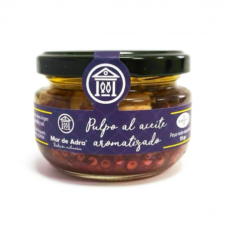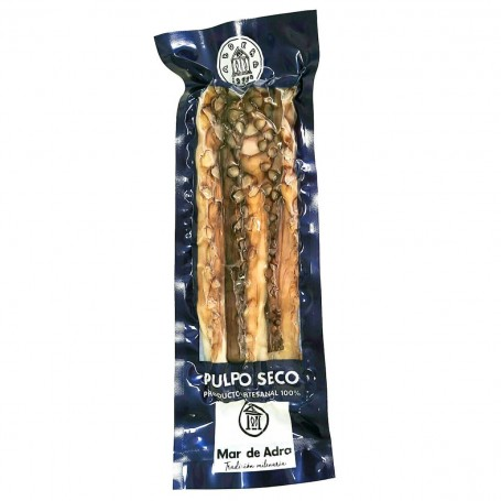 Pulpo seco conservado en aceite de oliva virgen extra.