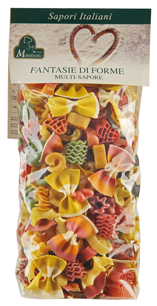 Pasta artesanal italiana coloreada, 500g por paquete.
