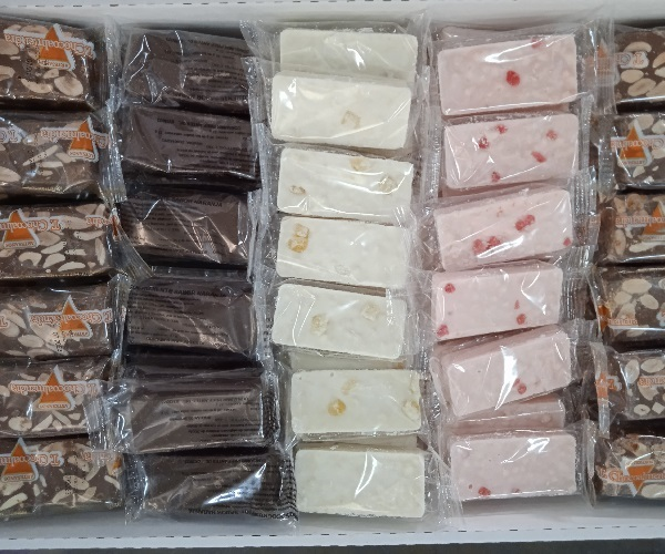 Así hoy podemos ofrecer figuritas de mazapán, huesos de santo, empanadas, pastel yema y Gloria, pasta de almendra, empiñonadas, así como una variedad de turrones que van desde los tradicionales duro, blando, choco almendra… hasta los crujientes de fresa, limón, naranja, café…