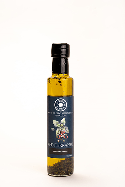 ACEITE VIRGEN EXTRA ESPECIADO MEDITERRÁNEO INGREDIENTES: PIMIENTA Y ORÉGANO