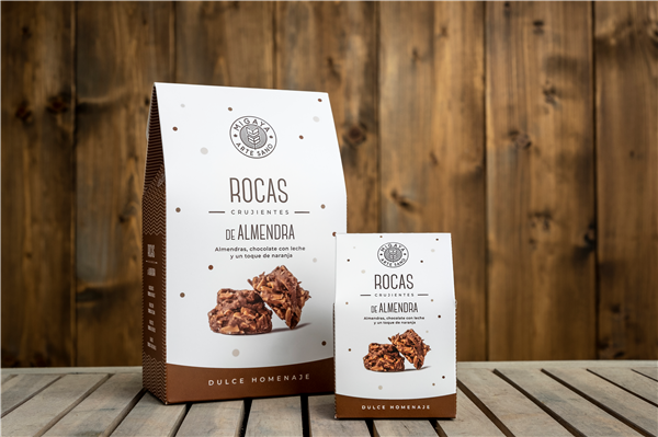 La roca de almendra es un clásico de la pastelería, que complementamos con nuestro toque personal de barquillo y piel de naranja, maridaje por excelencia del chocolate, dando como resultado una roca con un toque muy especial.