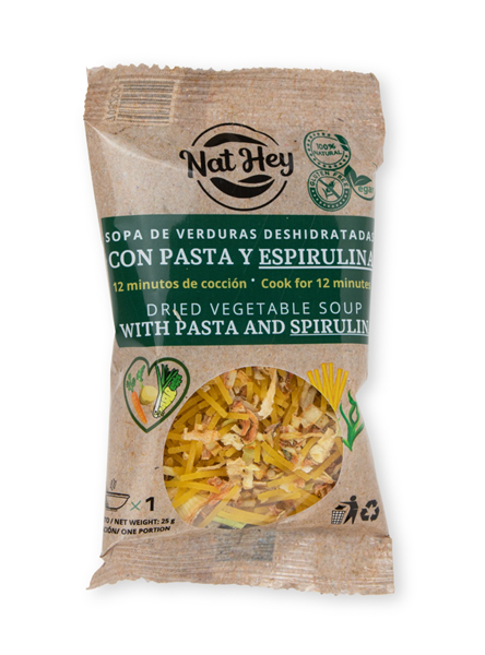 Sopa de Verduras Deshidratadas NatHey, con pasta sin gluten y espirulina