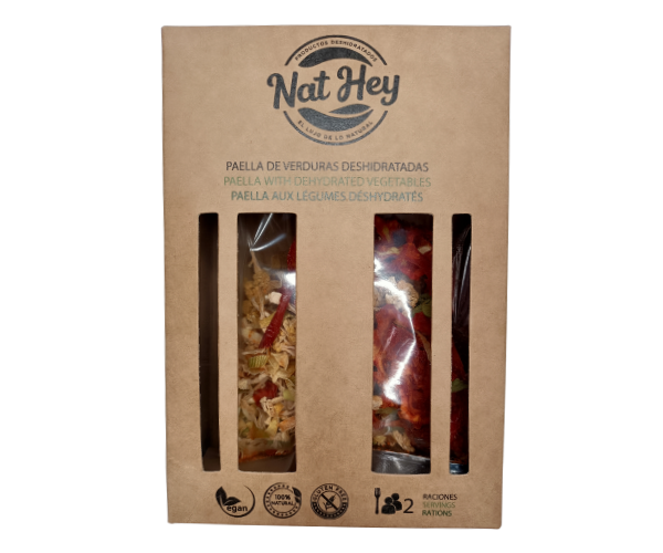 ESTUCHE CON VERDURAS DESHIDRATADAS, ARROZ Y AOVE PARA ELABORAR UNA AUTÉNTICA PAELLA CON VERDURAS