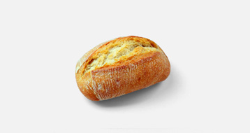 Esta pieza pequeña de 35 grs es la apuesta segura para el hostelero. Gracias al largo reposo que recibe la masa, se consigue un pan con mucho volumen, miga más esponjosa y un sabor y aroma ligeramente dulce. La ventaja de este pan es que tiene un aspecto rústico, con corteza enharinada, crujiente y una greña muy marcada, por lo que se consigue un producto atractivo que funciona tanto en mesa como en montadito o incluso en pincho de barra. Esta pieza estará lista con solo 5 minutos de horneado.