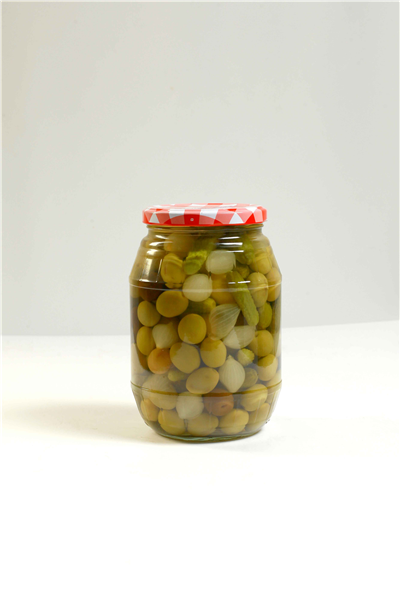 ACEITUNAS VERDES AL ESTILO ESPAÑOL CON CEBOLLITAS Y PEPINILLOS CON UN TOQUE JUSTO DE VINAGRE