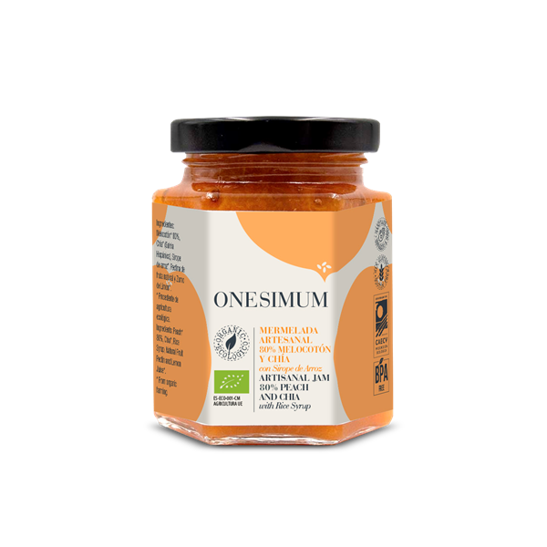 Mermelada artesanal de melocotón y chía con sirope de arroz