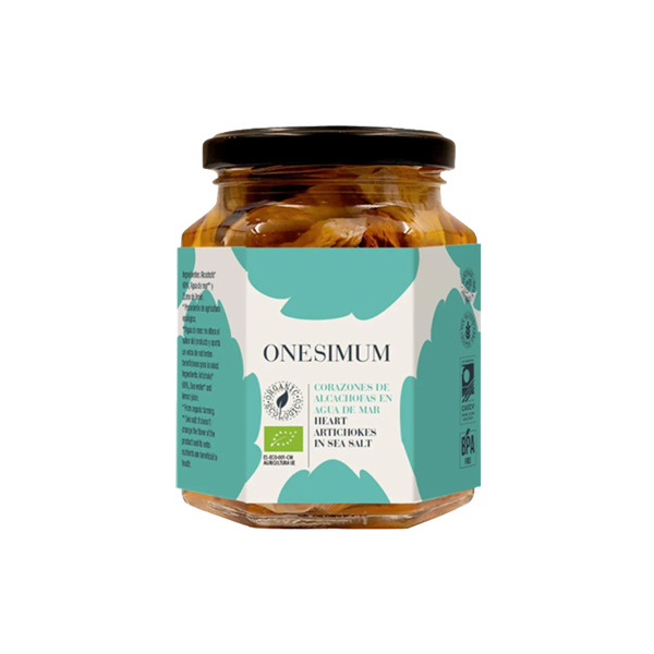 Corazones de alcachofa ecológica en agua de mar