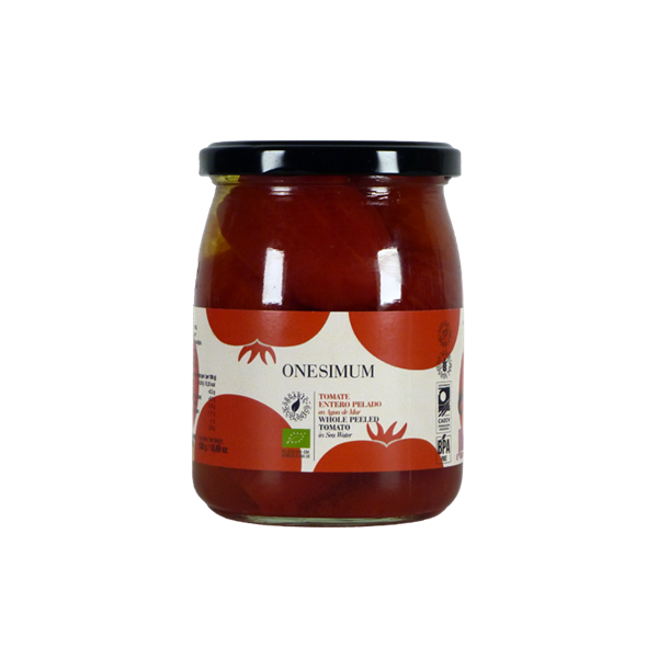 Tomate entero pelado en agua de mar