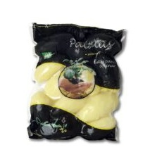 Pero las Patatas IV Gama Enteras tienen la condición de que no han sido troceadas, son patatas (como bien dice su nombre) enteras y peladas especial para freír o multiusos (a petición del cliente) en formato de bolsas de 2,5 Kg.