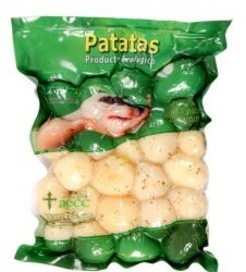Las Patatas V Gama Ecológica Ajo-Perejil consisten en pequeñas patatas calibradas (no mas de 30g) de guarnición, preparadas con un aliño de aceite de oliva virgen extra ecológico, ajo molido y perejil.