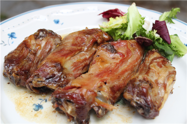 Cuello de cabrito o de lechal cocinada a baja temperatura.
