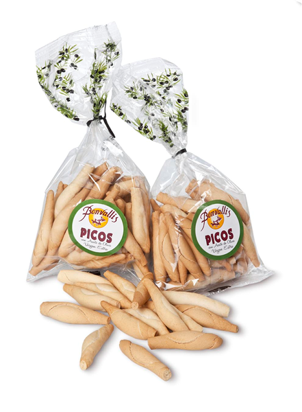 Los Picos artesanos son pequeños palitos de pan crujiente, muy típicos de Andalucía y presentes en toda España. Es un producto tradicional y muy popular, totalmente natural y artesano, en cuya elaboración se utiliza exclusivamente aceite de oliva virgen extra local.