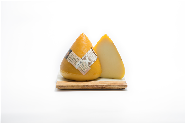San Simon D.O.P. elaborado en Galicia, con leche pasteurizada de vaca de las razas de Rubia, Gallega, Pardo-Alpina y Frisona. Es de pasta semi-blanda, bastante elástica, con una corteza dura, lisa y ahumada. Entre dos y cuatro semanas de maduración, prensado ligeramente y luego ahumado suavemente con madera de abedul. Tiene una forma cónica y un sabor peculiar y amplio, sin ser exagerado, a mantequilla y tonos dulces con un delicioso retrogusto ahumado que varía de suave a algo picante. Disfrútelo con almendra Marcona, Membrillo o Chutneys caramelizados, también con vinos blancos o cava brut.