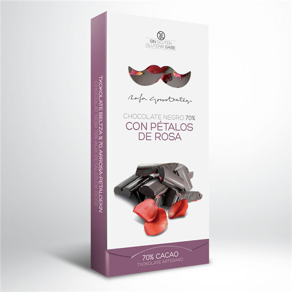 Elaboramos artesanalmente este chocolate negro con un 70% del mejor cacao, con todo el sabor de fresas liofilizadas, delicados pétalos de rosa enteros, pétalos de rosa liofilizados y aroma natural de rosas. 100GR.
