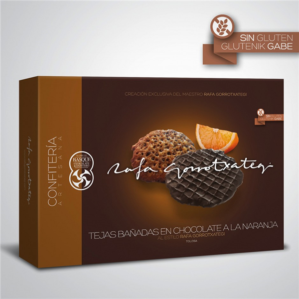 Elaboramos productos SIN GLUTEN: tejas de almendra caramelizadas, tabletas de chocolates, bombones, Gorrotxas (nuestros macarons basque), turrones muy especiales, de chocolate y ganache tierna, de mandarina, armagnac, etc.
