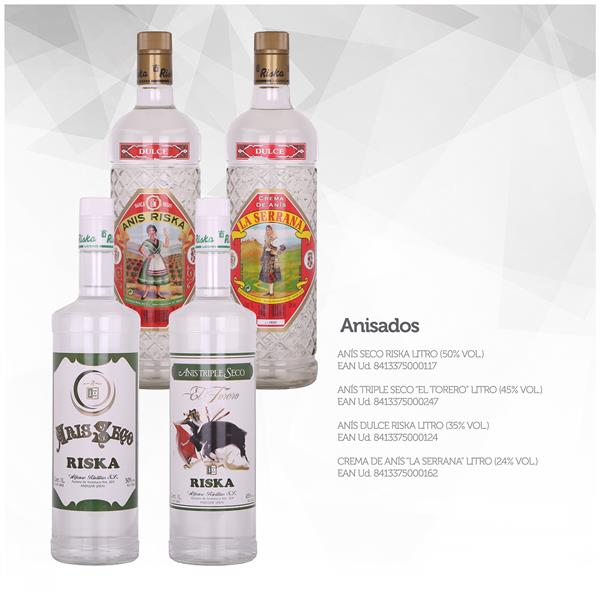 Anís Dulce Riska: Capacidad: 1L. Graduación: 35%