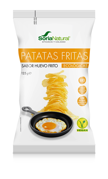 Las Patatas Fritas Ecológicas Sabor Huevo Frito están elaboradas siguiendo una receta cien por cien natural, con patatas de proximidad y aceite de oliva virgen extra.