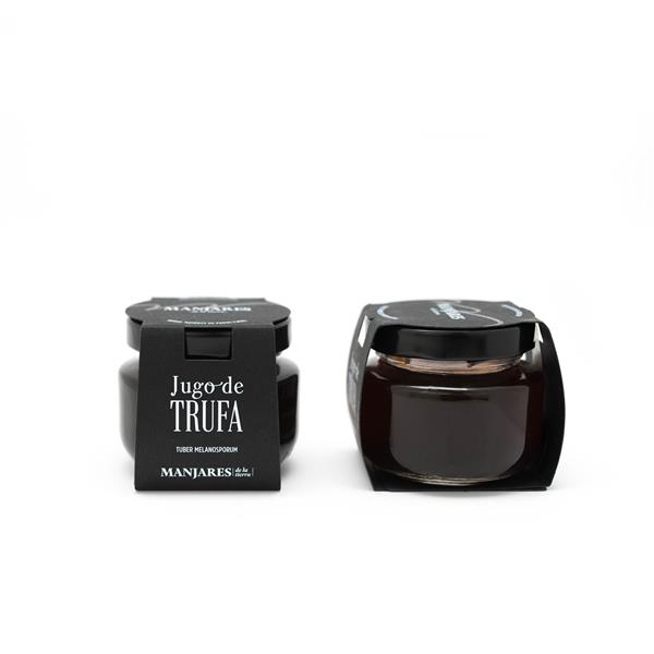 El jugo de trufa se obtiene de la primera cocción de trufa negra Tuber melanosporum totalmente frescas junto con agua y sal. Sin añadir en ningún momento ni colorantes ni conservantes. Se trata de un tarro de 45 ml que contiene la propia esencia de la trufa.La cocción de la trufa se realiza de tal forma que la trufa vaya expulsando su jugo poco a poco sin perder sabor ni aroma. Este jugo de trufa que acaba soltando se envasa directamente, por lo que el resultado final que te llega a casa es el de un producto 100% natural.