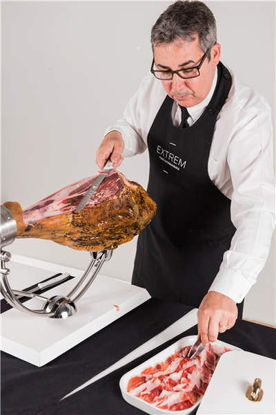 Durante estos días trabajaremos con algunos de los mejores cortadores a cuchillo de ibérico en España para cortar en vivo piezas enteras de jamón y paleta de bellota 100% ibérica. Además, los asistentes podrán observar el proceso del corte a cuchillo, la manipulación y cómo emplatar el jamón y la paleta.