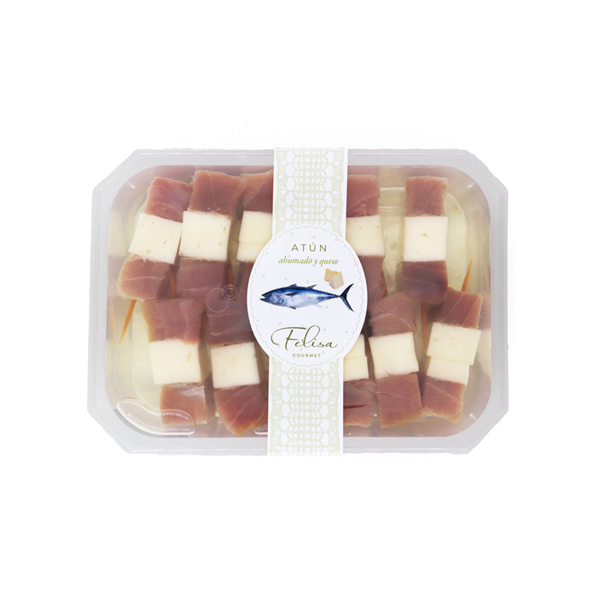 SQUARE OF BLUEFIN TUNA AND CHEESE APPETIZER